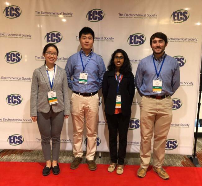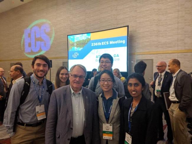 Dingying, Ming, and Andrew attended the 236th ECS Meeting (October 13-17, 2019) at Atlanta, GA. Hurrah for not only their broadened horizons, but their attendance representing the ECS-UK chapter (with Udari from our Department of Chemistry), reunion with our former group member, Dr. Jiazhi Hu at General Motors, and connection with the 2019 Nobel Prize winner, Dr. M. Stanley Whittingham, in Chemistry!